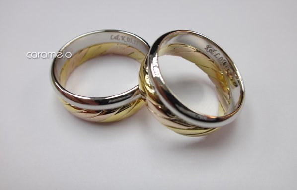 麻花造型的部分因選擇了玫瑰金和K黃的亮面處理效果,